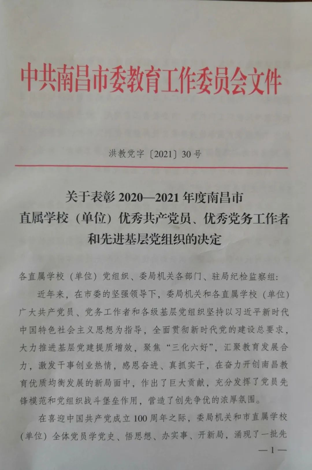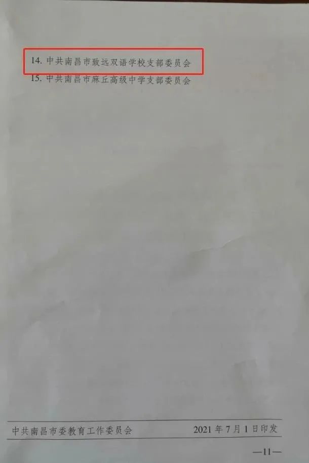 南昌市致远双语学校扎实推进党建工作喜获表彰 ——热烈祝贺我校获“南昌市直属学校(单位)先进基层党组织”荣誉称号