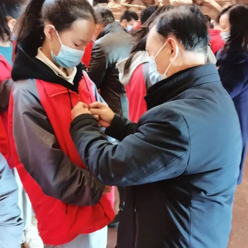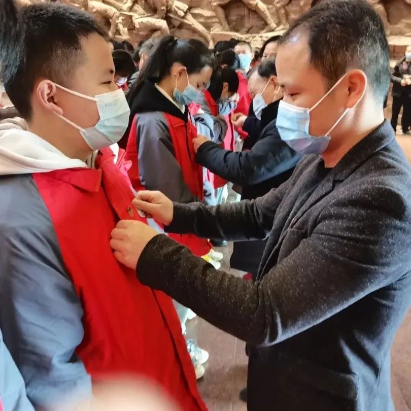 接着由学校领导和党员教师为新团员们佩戴团徽并颁发团员证。校团委副书记周超宣读了新团员名单,并带领新团员们手握拳头进行了庄严的入团宣誓。庄严宣誓,铮铮誓言铿锵有力,这是新团员在向团组织表明决心,相信他们必将牢记团的誓言,带着共青团员的使命和荣誉,坚定为共产主义奋斗的信念,勇于砥砺奋斗,担当时代责任,拥抱新时代,奋斗新征程。