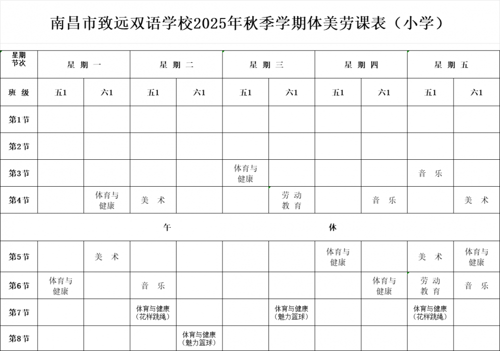 南昌市致远双语学校2025-2026学年度第一学期课表公示