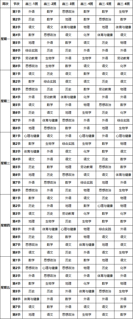 按照省教育厅《关于开展中小学体育美育劳动教育“晒课表”的通知》要求,严格落实体育美育劳动教育课程开设刚性要求,按照新标准开齐开足上好体育美育劳动教育课。我校严格落实“晒课表”制度,开齐开足音体美劳课程。现将我校课表公示如下: