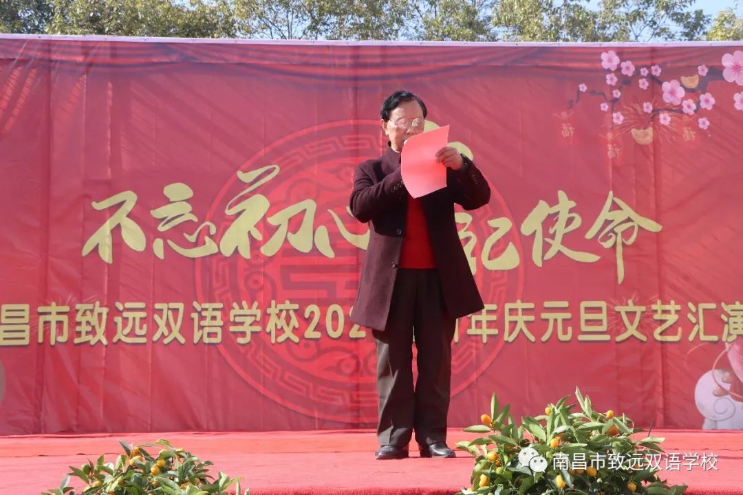 校党支部书记、校长周金祥在文艺汇演前致贺词,表达了对全校师生的祝福和祝愿,对新一年师生的工作、学习、生活和学校的蓬勃发展提出了寄语和展望。